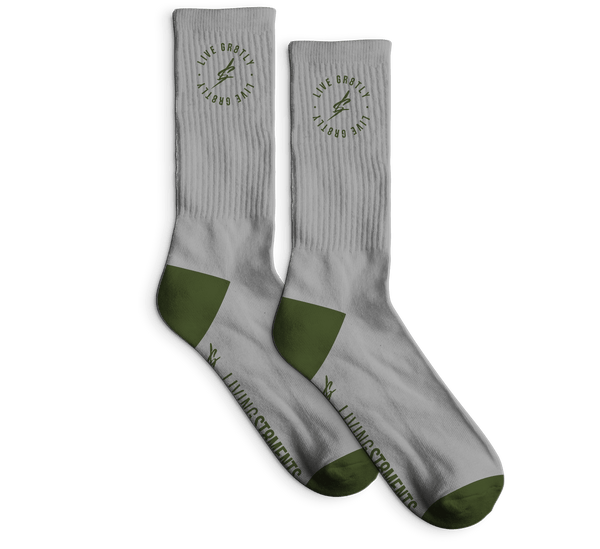 LIVE GR8TLY - Sports Crew Socks (Grey/Olive)